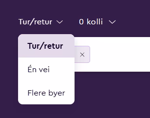 Valget tur/retur inneholder disse valgene: