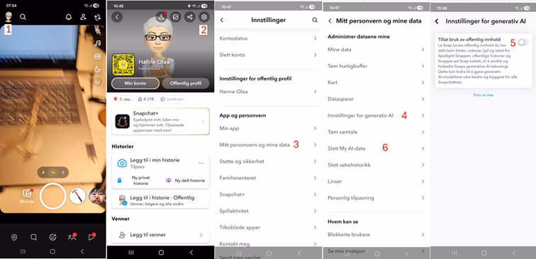 Snapchat bruker nå det du legger ut til å lære opp dataprogrammene sine (kunstig intelligens). Dette gjør Snapchat uten å be deg om tillatelse eller informere om det. I Norge og EU er det personvernforordningen (GDPR) som regulerer dette. I korte trekk sier loven følgende om situasjoner som denne med Snapchat. Du har rett på informasjon fra selskap som ønsker å bruke dine personlige opplysninger til nye formål, som for eksempel trening av kunstig intelligens.