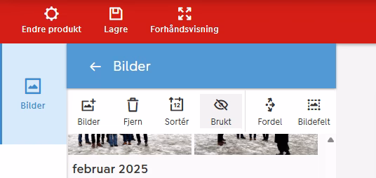 Øverst til venstre, når du er i bildevisning, kan du klikke på Brukt, da blir bildene du har brukt borte fra samlingen, det gjør det enkelt å hindre at du setter inn et bilde to ganger.
